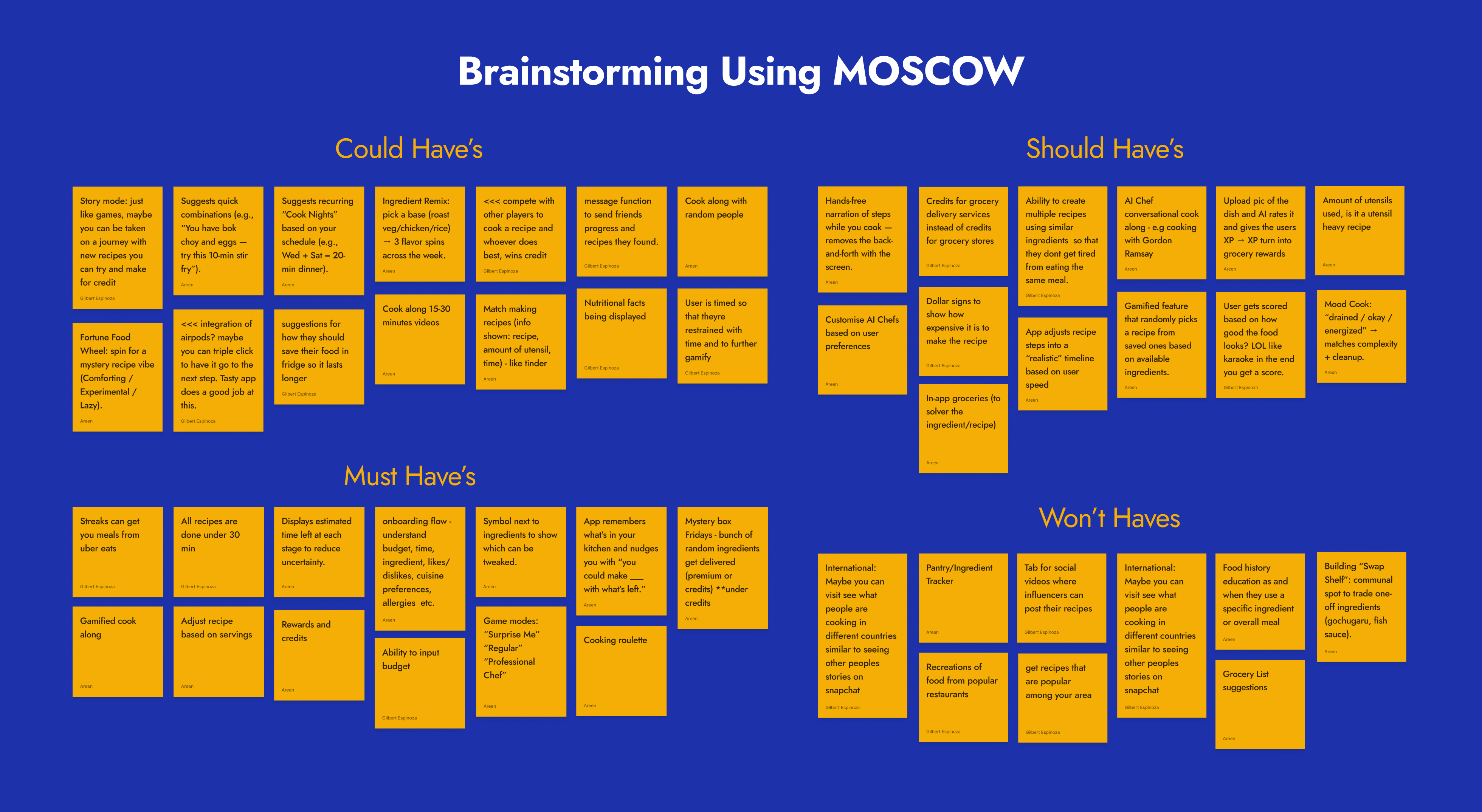 after finding our insights and learning how long the cooking process takes, we started brainstorming ideas using moscow.