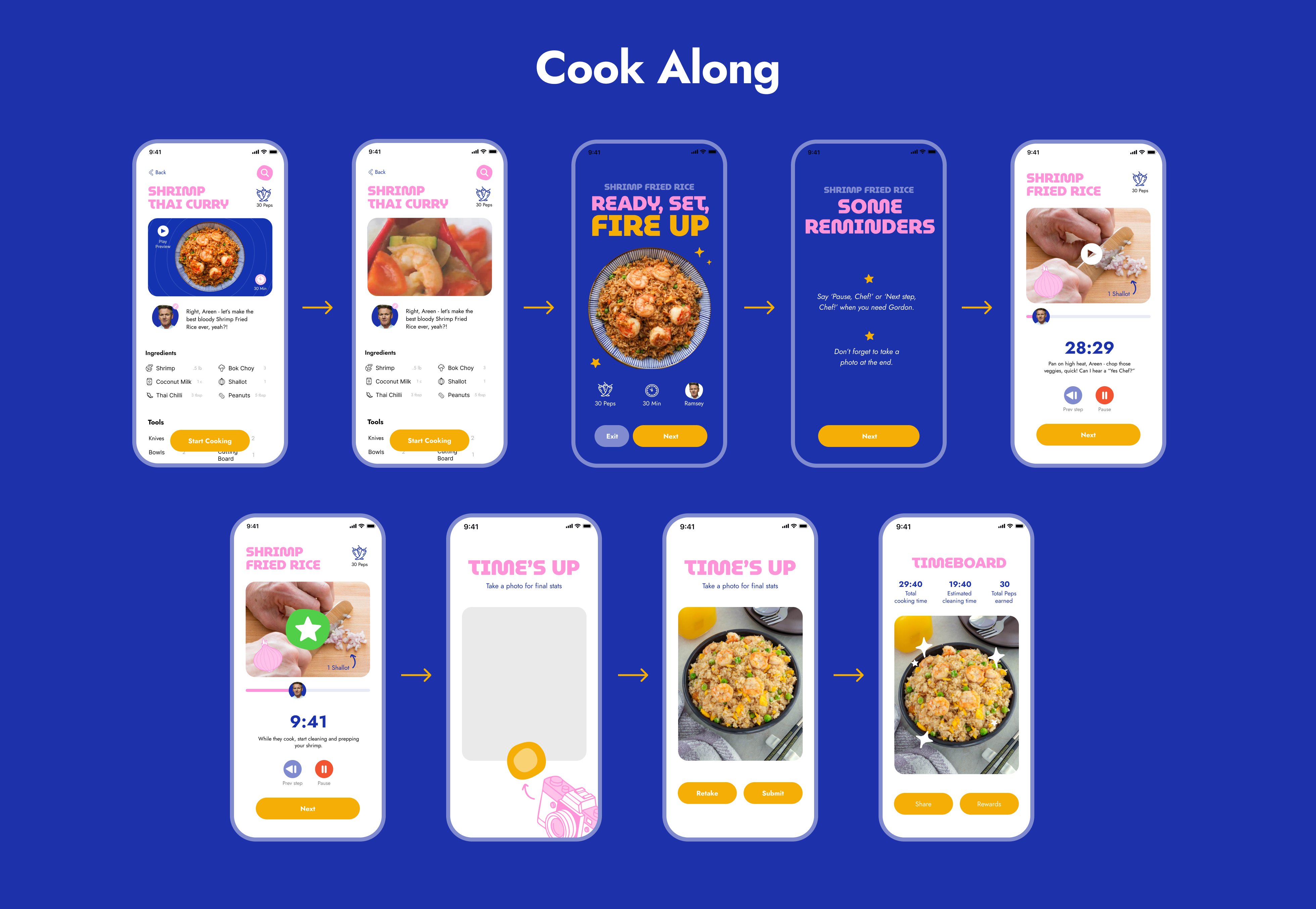 once a recipe is chosen, you’re then sent to a step-by-step experience that guides you through the recipe itself. it gives you a rundown of what ingredients you need, the tools you need and the estimated time it’ll take to finish. in addition, you have access to how many peps you will earn with the recipe and a sneak peak of the video. once you’re ready to “fire up” a timer is and a path is shown to let you know how much of the journey is finished. at the end, you take a photo of your final product and voila!
